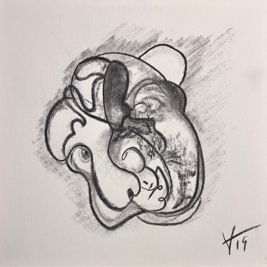 50x50 cm, Part 1, 5.3.2025, Charcoal on Canvas